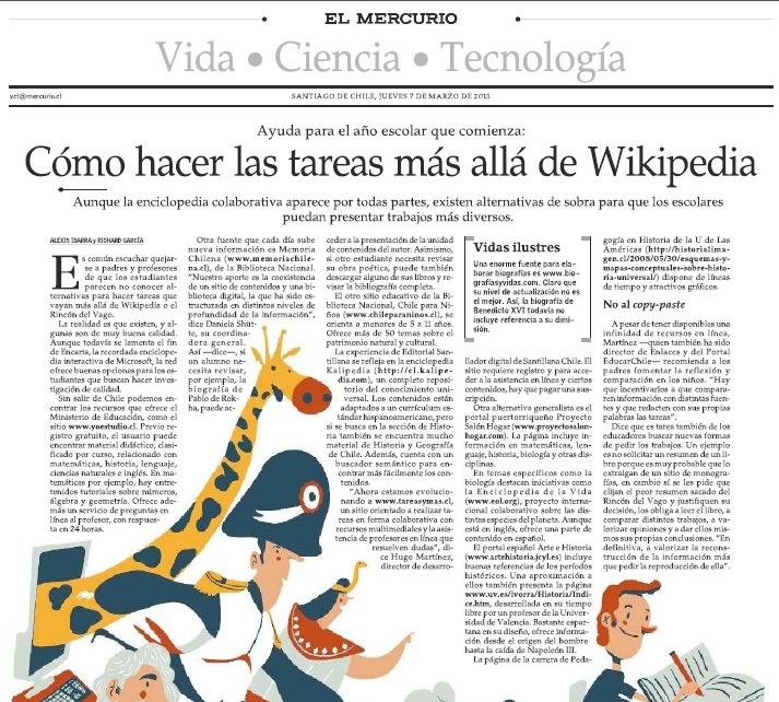 - El Mercurio (artículo sobre cómo estudiar más allá de wikipedia)