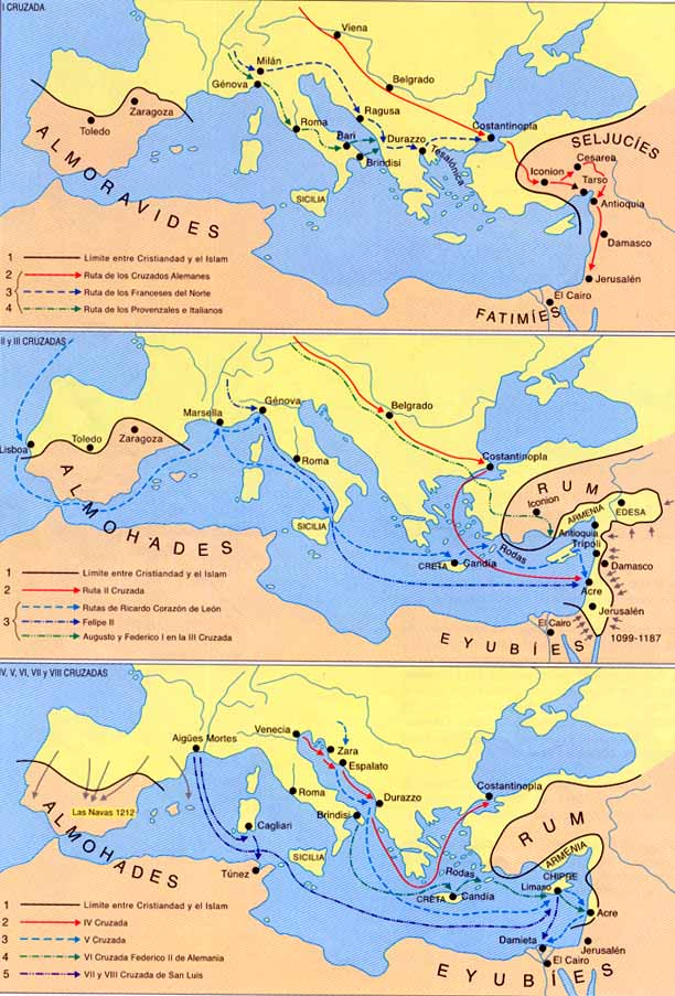 Aquí sólo les dejo un ejemplo de mapa histórico que ilustra uno de los procesos característico de la Edad Media.