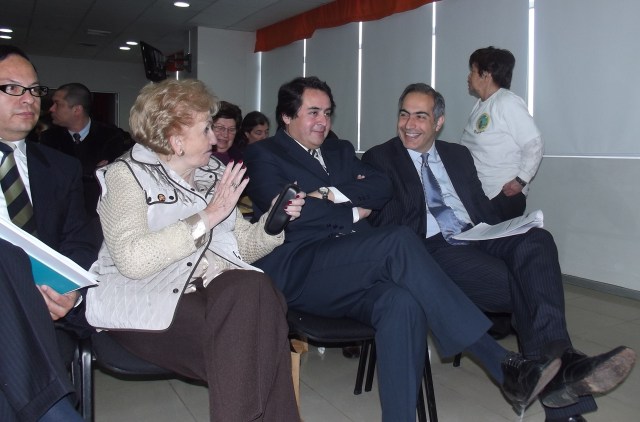 Claudio Apablaza (Vicerrector Udla), Francisco Chahuan (Senador), Eugenia Garrido (Concejal), Rodrigo Quijano (Director FEDU), Ana Henriquez (Directora Ped. En Historia, Geografía y Educación Cívica), Matías Gonzalez (Docente FEDU).