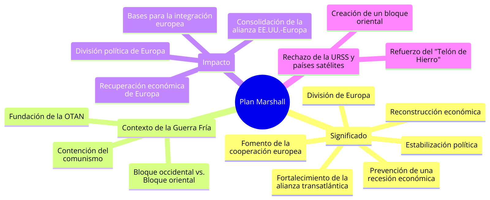 Estas ideas centrales ayudan a comprender la importancia y el impacto del Plan Marshall en el contexto histórico de la posguerra y la configuración del orden mundial durante la Guerra Fría.