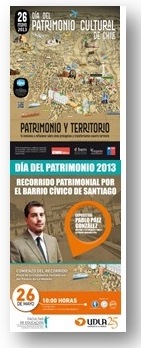 El domingo 26 de mayo se llevó a cabo el “El recorrido patrimonial por el barrio cívico de Santiago” en el contexto de la celebración del día del patrimonio 2013. Pablo Páez, Académico de la carrera de Pedagogía en Historia, Geografía y Educación Cívica Campus Santiago Centro de UDLA, presentó a los asistentes aspectos destacados de la historia y características arquitectónicas del conjunto patrimonial denominado BARRIO CÍVICO. Se le denomina de esta manera debido a que los edificios que se encuentran dentro de él son, en su gran mayoría corresponden a dependencias y edificios de gobierno, entre los que destaca el Palacio de La Moneda. El eje principal comprende, de Norte a Sur, la Plaza de la Constitución desde calle Agustinas, La Moneda, la Plaza de la Ciudadanía, el Paseo Bulnes, terminando en el Parque Almagro.