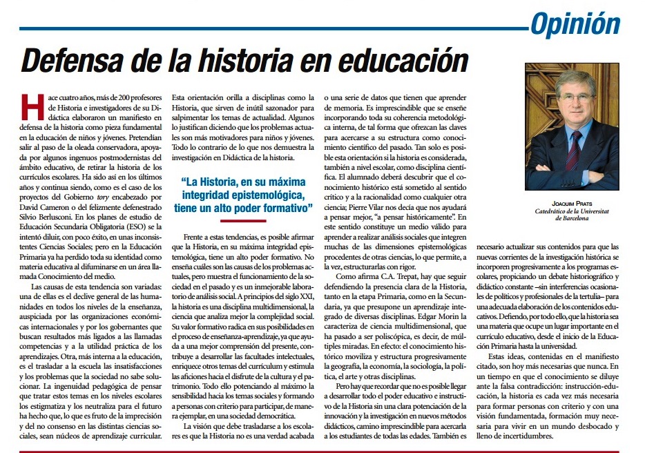 DEFENSA DE LA HISTORIA EN EDUCACIÓN, J. PRATS