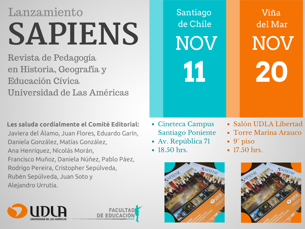 Todos invitados a lanzamiento de Revista Sapiens N°4, de la carrera de Historia, Geografía y Educación Cívica.