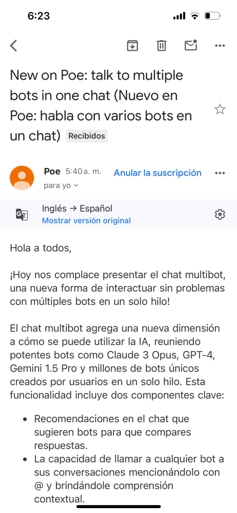 Hoy recibí un correo desde #POE, informando oficialmente la opción de integrar diversos #ChatBot en su plataforma. Aún cuando se cree por ejemplo en #ChatGPT, luego se puede interactuar en mismo hilo con #Gemini, #Claude, por ejemplo.