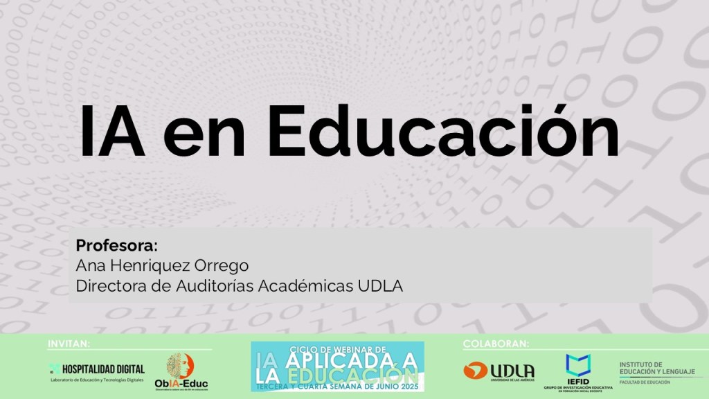 Comparto con ustedes la presentación que expuse el 17 de junio durante la jornada “Inteligencia Artificial en Educación”, organizada por el Observatorio de Inteligencia Artificial de la Universidad de Las Américas y el Laboratorio de Hospitalidad Digital. En esta instancia reflexionamos colectivamente sobre los desafíos, oportunidades y responsabilidades que implica la integración de la IA generativa en contextos educativos. La exposición tuvo como objetivo promover un enfoque ético, pedagógico y estratégico del uso de estas tecnologías emergentes.