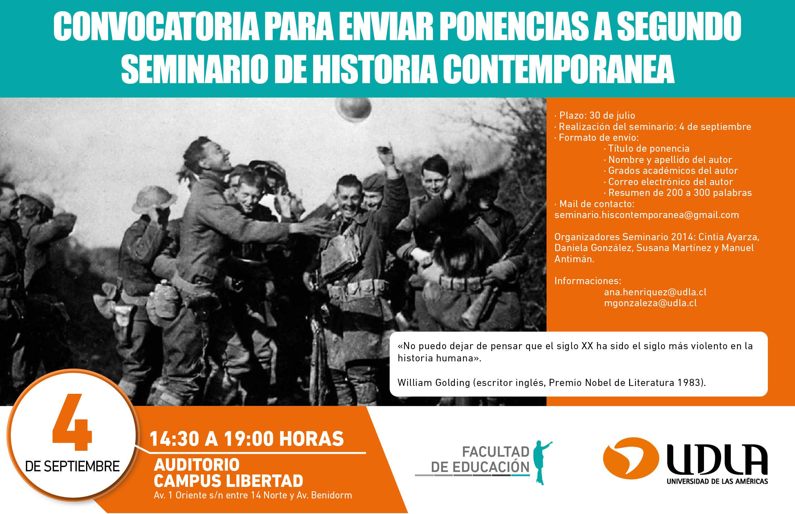 Convocados: estudiantes, egresados y profesores de la Carrera de Historia, Geografía y Educación Cívica de Universidad de Las Américas. También se aceptan artículos externos.