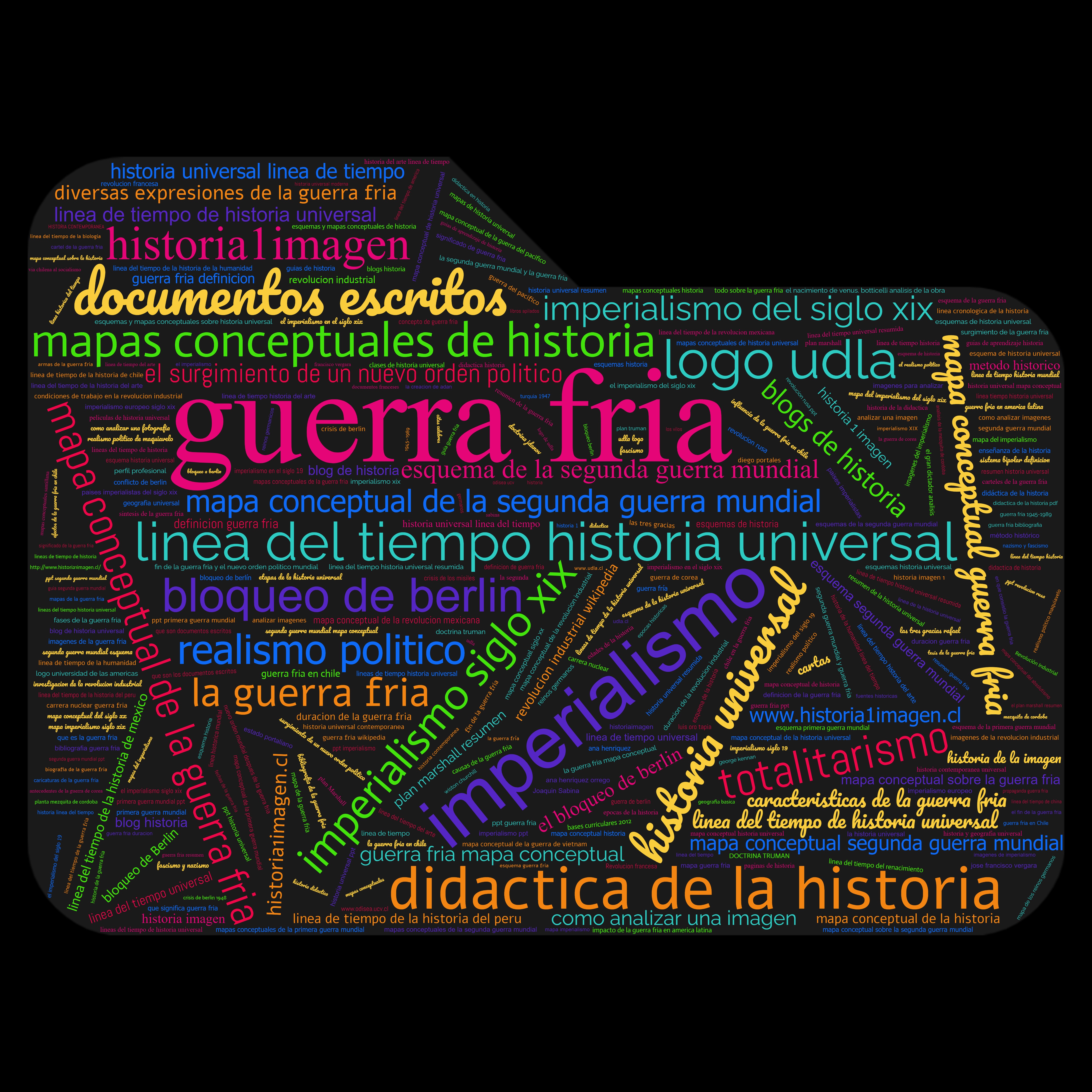 Según el reporte de wordpress estos son los términos más buscados: Guerra Fría, Línea de tiempo historia universal, Imperialismo, mapas conceptuales de historia, didáctica de la historia, totalitarismo, bloqueo de Berlín, etc.